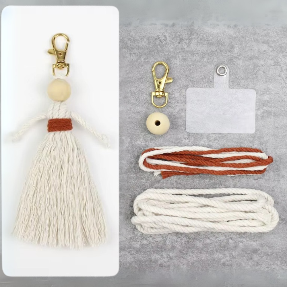 Оригінальний набір для створення брелока-ляльки своїми руками. Поєднання білого та жовтого кольорів додає виробу яскравості та сонячного настрою. Підійде для ключів, сумки чи як подарунок.